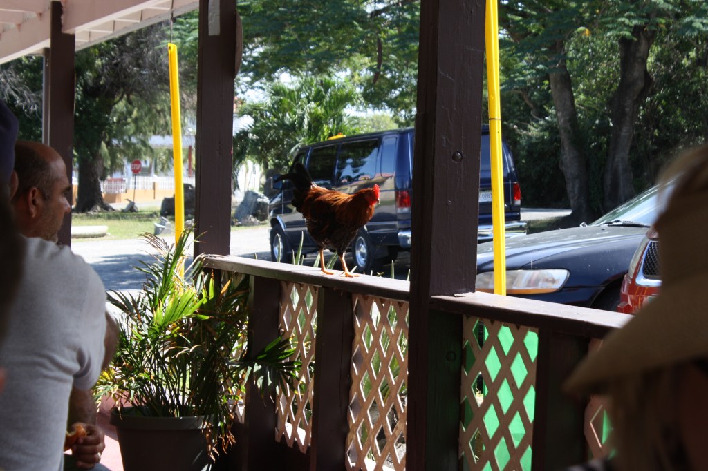 We eventually stopped at a friend’s restaurant for lunch. Restaurant is a stretch of the term. Basically a roadside lean-to, with a four seat bar, pool table, and a window with a steam table, containing the daily fare. Picnic tables with free running roosters and chickens completed the ambience. Wilson said the food was always fresh and her conch was amazing. Here we were, every guide says, don’t eat at the roadside stands, after all, I was still a little fragile from my bout with the flu. Unfortunately, she had no conch, but fresh octopus. I was in, it was incredible, fresh, spicy and very flavorful, Linda and Jared ordered roast pork ribs, also delicious. Beers for Jared and I, Linda tried to order a vodka tonic, which confused the non English speaking bartender, so she settled for a vodka cranberry, that was doable. The meals were excellent, and we escaped any gastrointestinal retributions. We saw all the island, and it was 250 dollars well spent, plus a VERY generous tip for Wilson.
