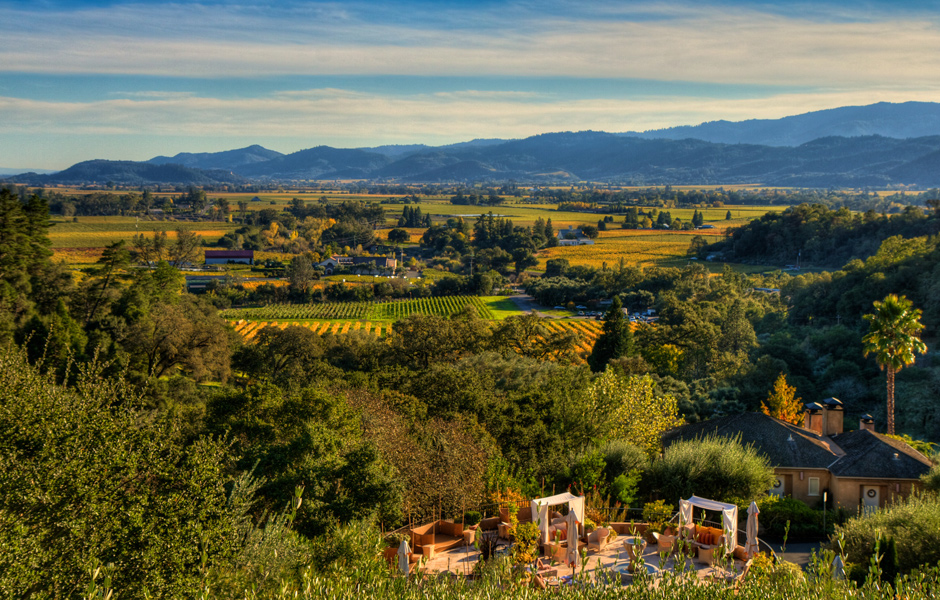 - Auberge du Soleil. Located on the side of the Vaca Range, looking west over the valley as the sunset. Billed as the best restaurant view in Napa, it did not disappoint. Nor did the Horseradish Grilled Ribeye with gouda scalloped potato and roast cipollini relish