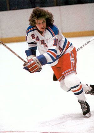 Arriving at The Spectrum in time for the pregame skate around. The evening’s opponent was the New York Rangers. Playing for the Rangers was Ron Dugay, noted for his flowing long hair in the pre-helmet NHL. Ron’s good looks and his penchant for dating fashion models made him a media sensation. Eventually he would marry supermodel Kim Alexis.